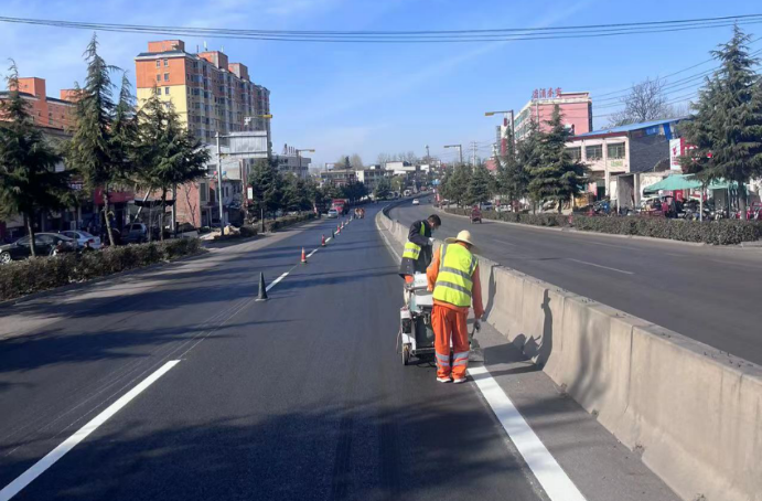 目前,已完成標(biāo)線施劃2000多平方米,剩余道路標(biāo)線施劃工作正在有序進(jìn)行中。