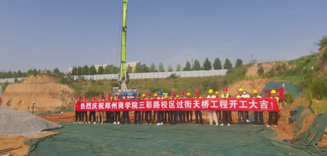 6月22日,鄭州商學院三彩校區(qū)過街天橋的建設項目如期迎來了開工典禮。當日上午9時,施工現(xiàn)場彩旗飄揚,氣氛熱烈。伴隨鞭炮聲的響起,位于7-1承臺1號樁的旋挖鉆正式啟動施工作業(yè),標志著商學院三彩校區(qū)過街天橋工程正式拉開帷幕。