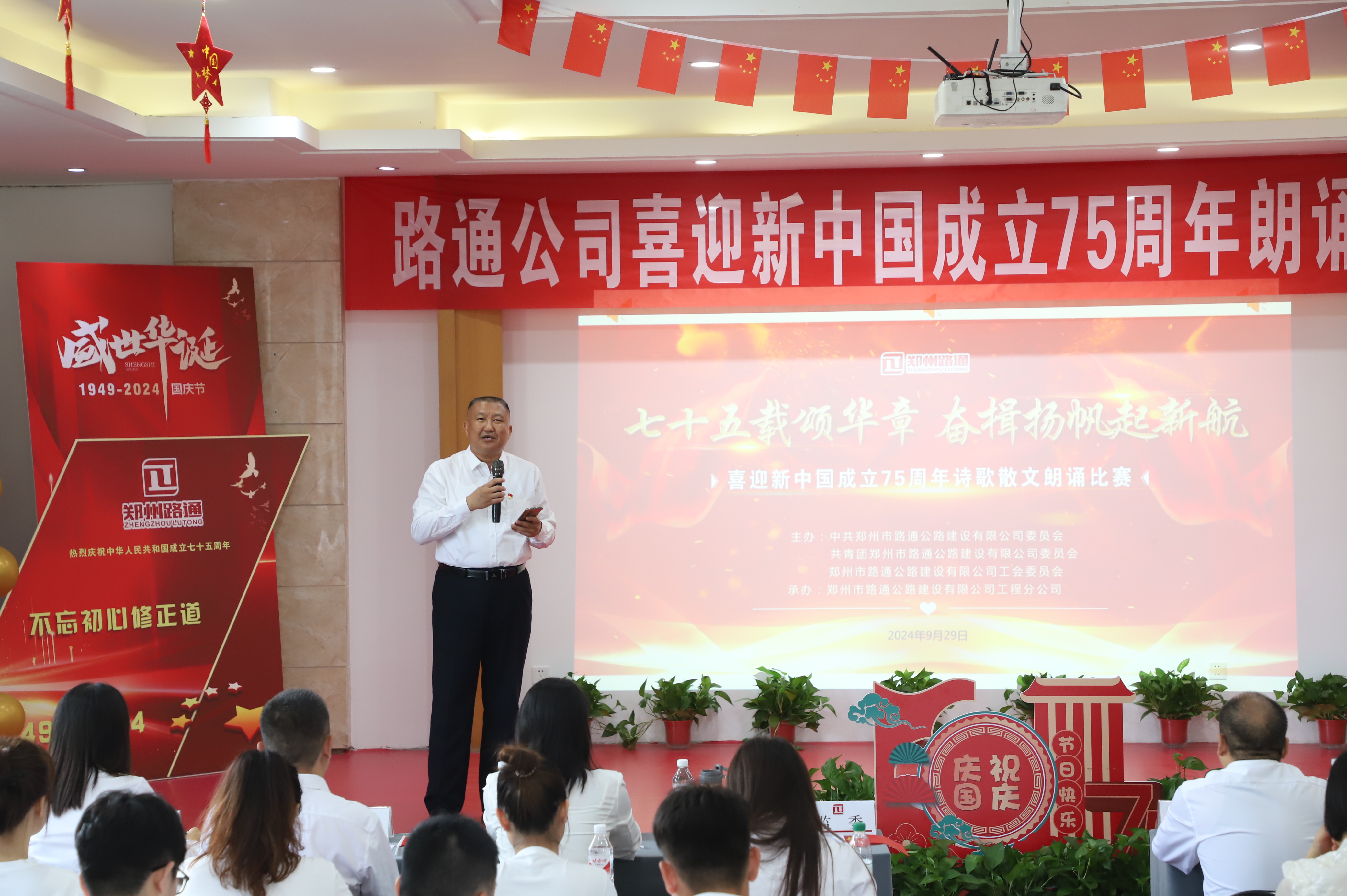 在中華人民共和國成立75周年到來之際,為抒發(fā)對祖國的美好祝愿,展現(xiàn)“不忘初心砥礪奮進(jìn)”新時代路通人的精神面貌。9月29日上午,路通公司在滎陽環(huán)翠峪職業(yè)技能培訓(xùn)中心隆重舉行喜迎新中國成立75周年朗誦比賽。